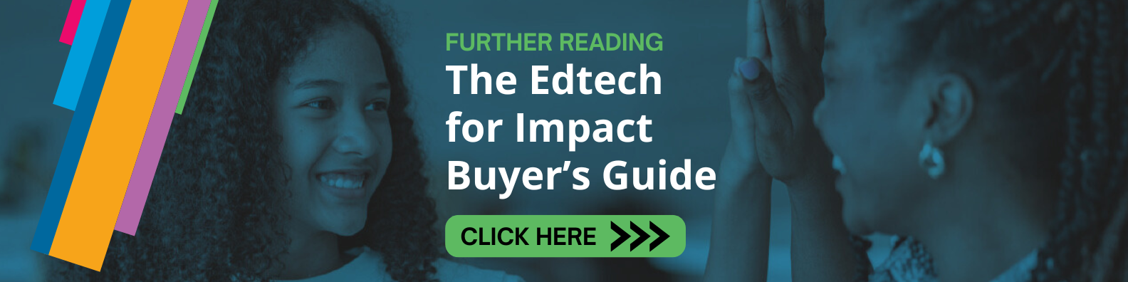 For more resources that can help with the selection of edtech tools, consider our EdTech for Impact Buyer’s Guide.