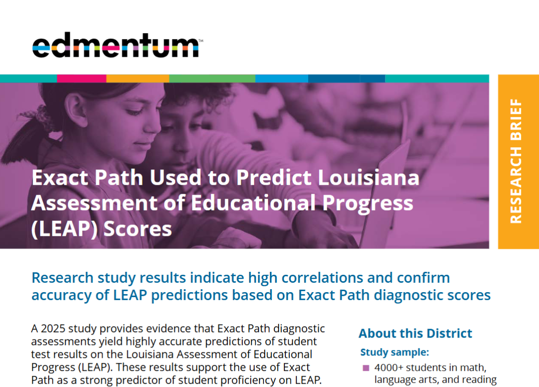With this evidence, educators can confidently use Exact Path diagnostic results to predict students’ LEAP performance and ensure students are on track to meet academic standards, helping them build the knowledge and skills needed for success on the state assessment.